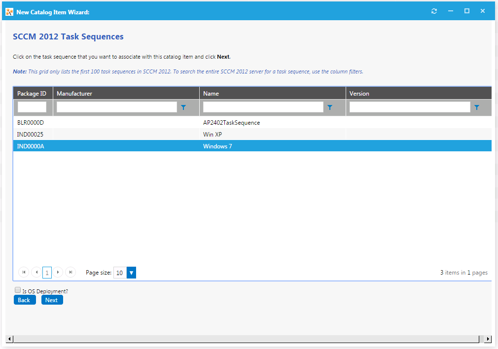 4. Select the task sequence that you want to associate with this catalog item.