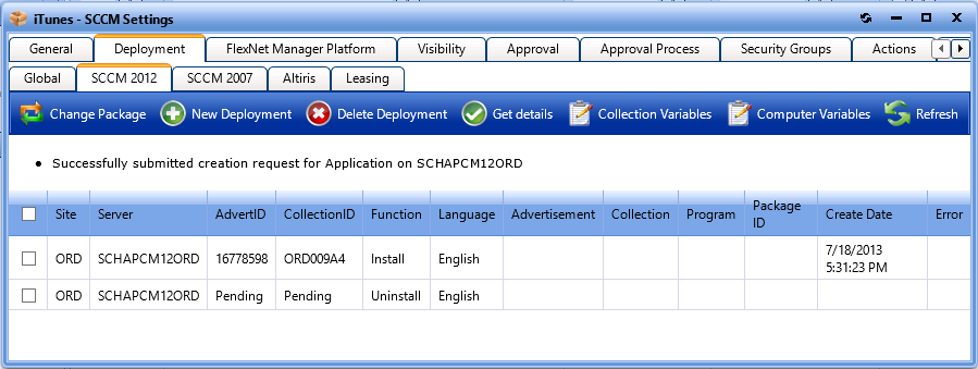 Open the Deployment > SCCM 2012 subtab that contains the catalog item’s associated application or package.