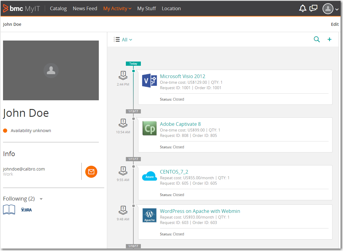 To open the BMC MyIT end user interface, perform the following steps: