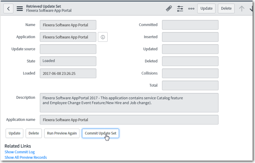 Importing and Configuring the Flexera Software App Portal Update Set in ServiceNow