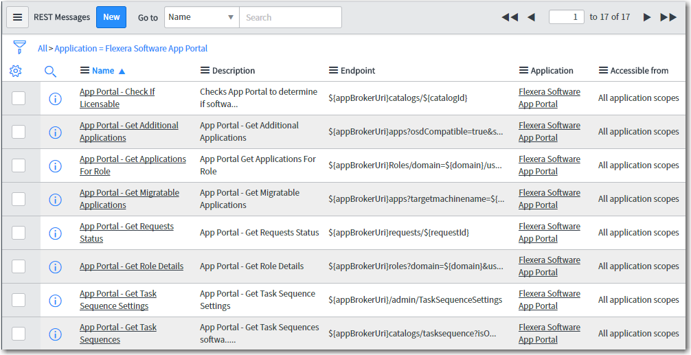 18. Under Flexera Software App Portal in the menu, click on Rest Messages. The Rest Messages view opens.
