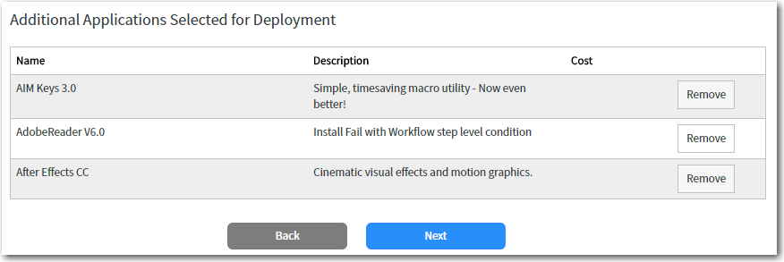 14. Select the additional applications that you want to migrate and then click Add Applications. The applications are added to the Additional Applications Selected for Deployment table at the bottom of the panel.