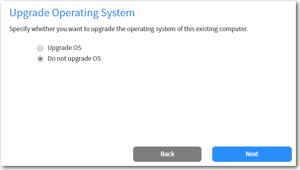 • If you only want to migrate applications or add additional applications to the existing computer but do not do not want to upgrade its OS, select Do not upgrade OS.