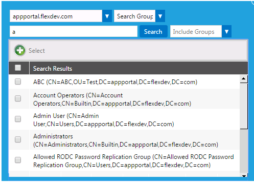 3. Select one or multiple groups or OUs/AUs and click Select. The selected groups or OUs/AUs are now listed on the Conditions tab.