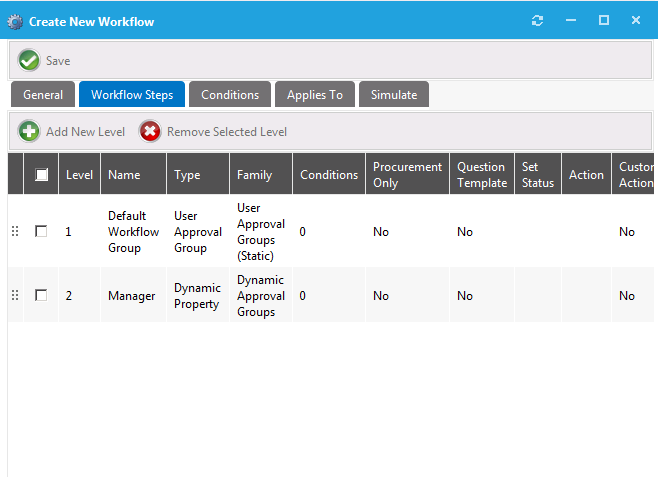 22. Click Save. The new approval workflow is now listed on the Workflows View.